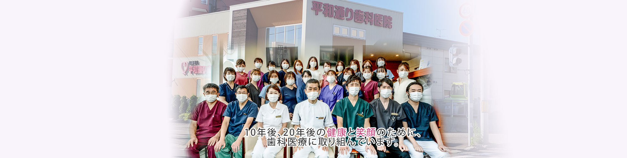 医療法人平和通り歯科医院は10年後、20年後の健康と笑顔のために、これからも皆様にとって良質な歯科医療に取り組んでいます。ご予約・ご相談はお気軽にどうぞ。